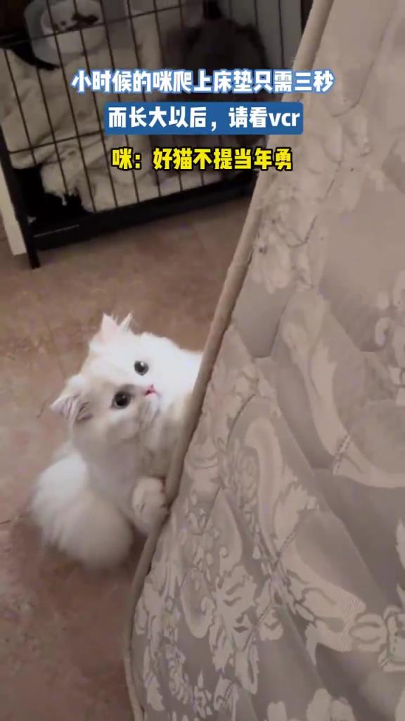 小猫长大爬床垫 速度对比鲜明!