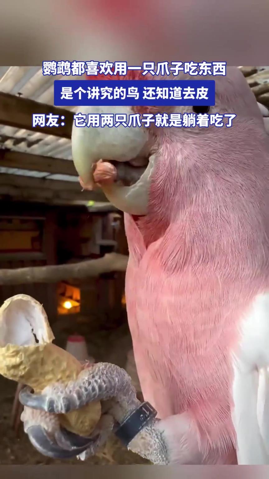 鹦鹉都喜欢用一只爪子吃东西,是个讲究的鸟,还知道去皮