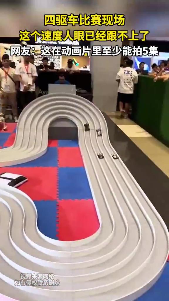 四驱车比赛现场这个速度人眼已经跟不上了
