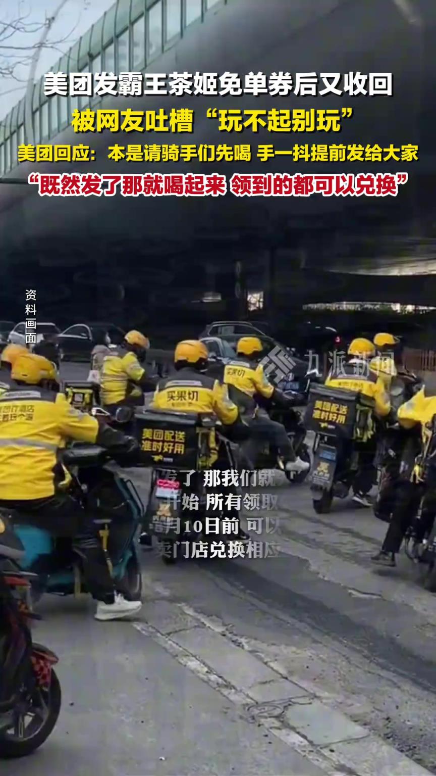 美团回应收回奶茶免单券 :本是请骑手们先喝