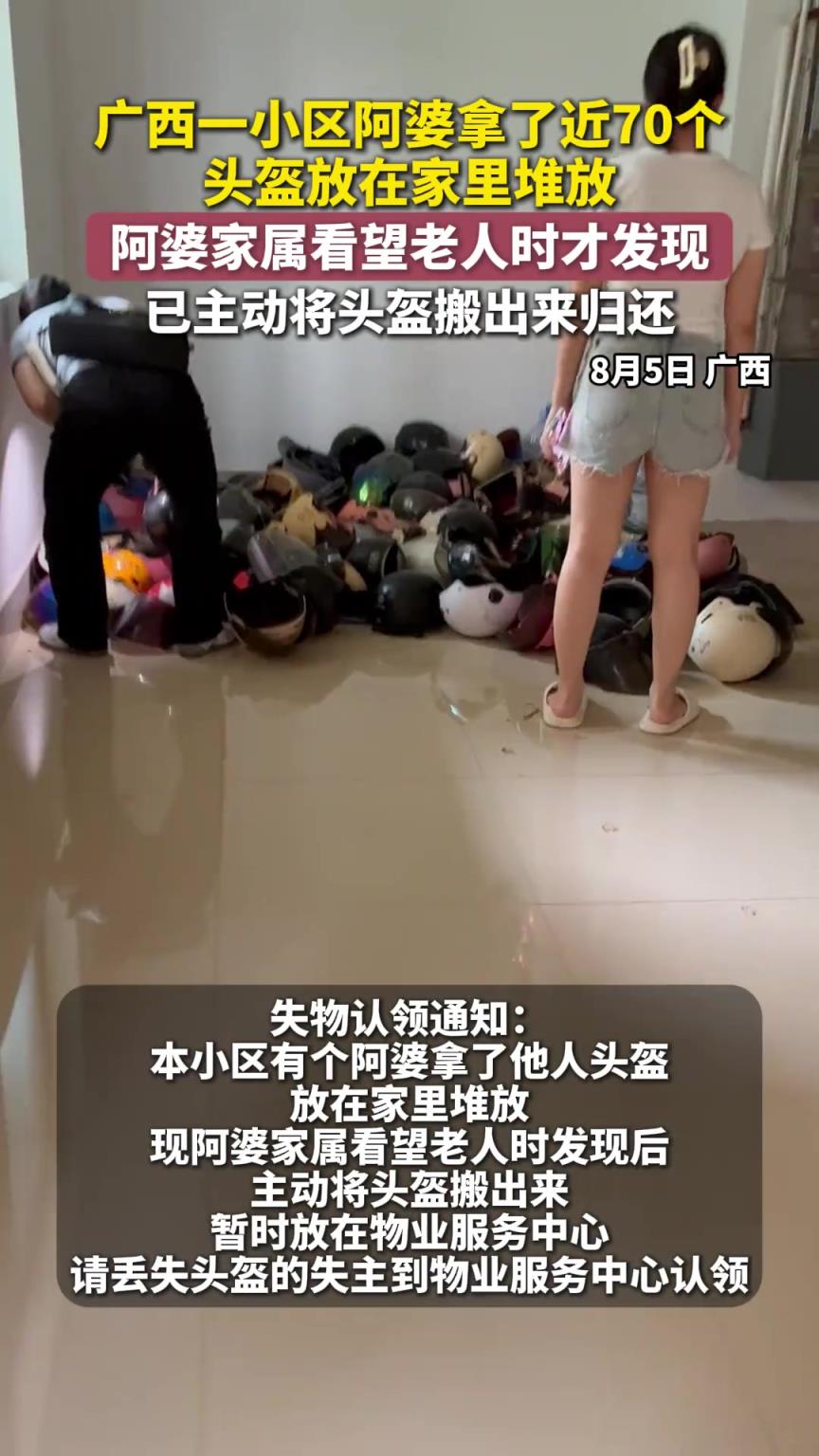 阿婆拿了近70个头盔放在家里堆放,家属看望老人时才发现