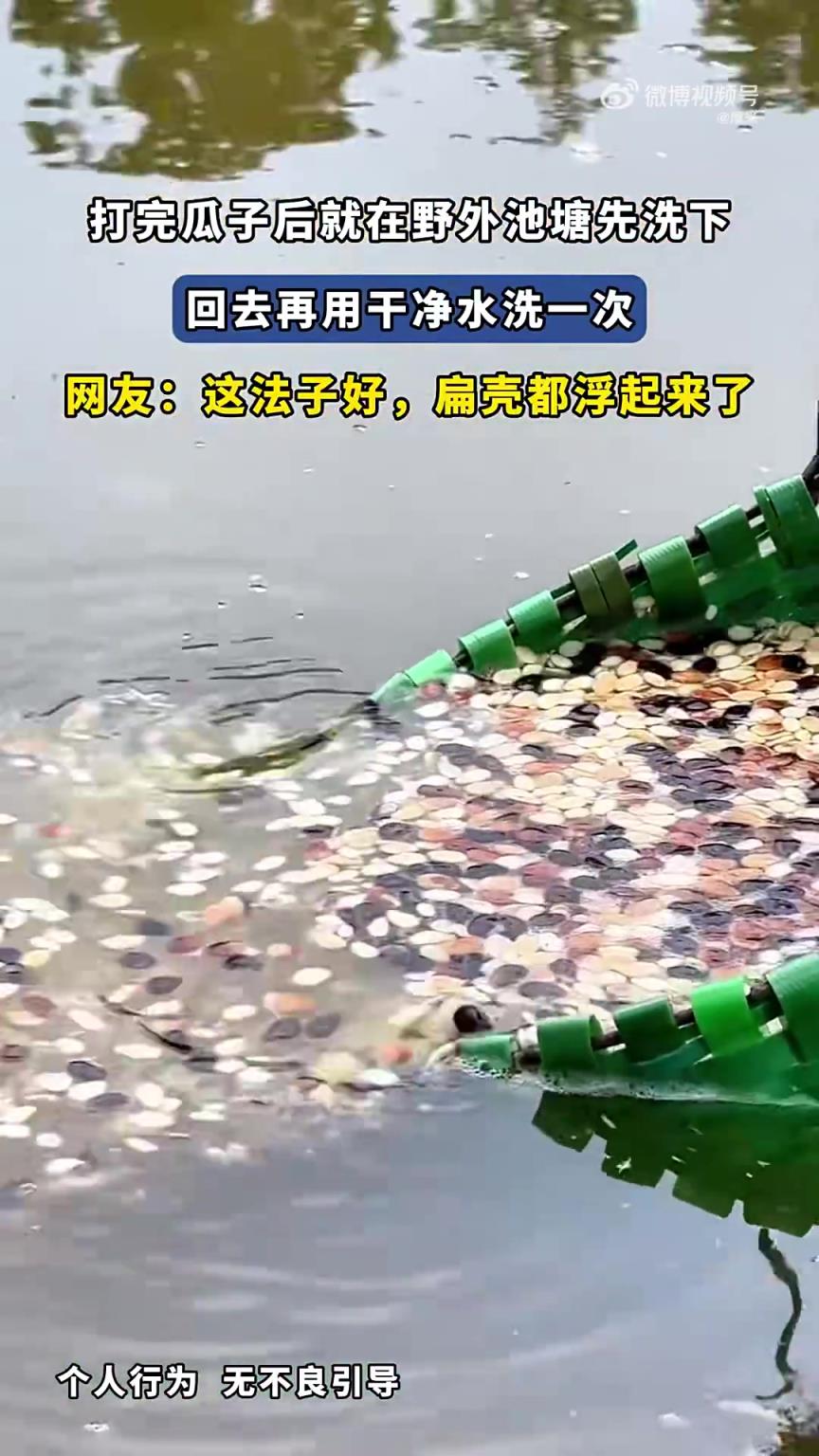 打完瓜子后就在野外池塘先洗下,回去再用干净水洗一次!