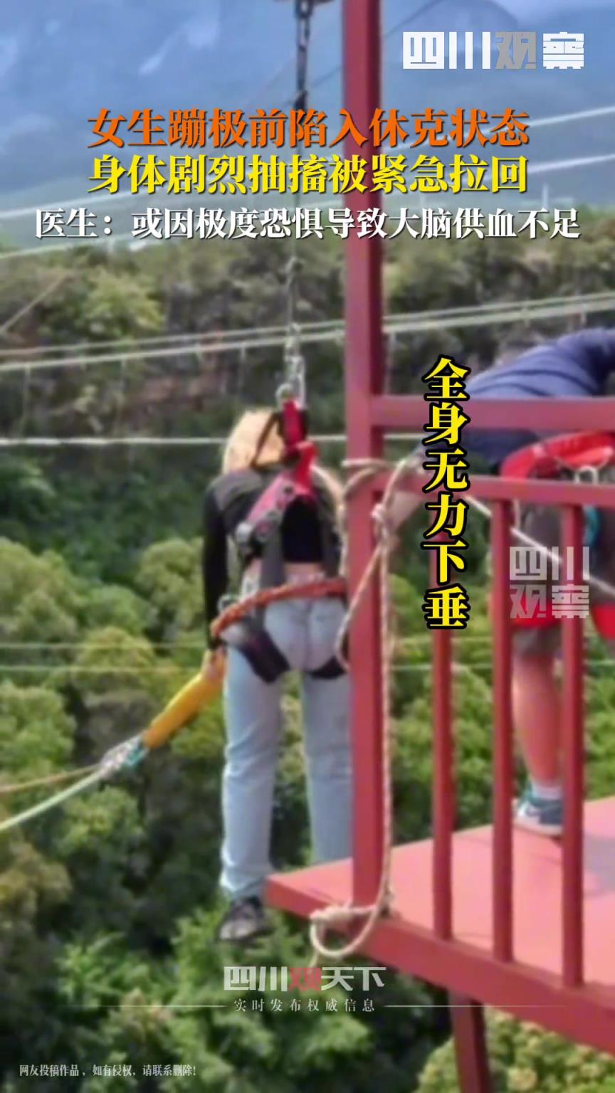 女生蹦极前休克抽搐被紧急拉回