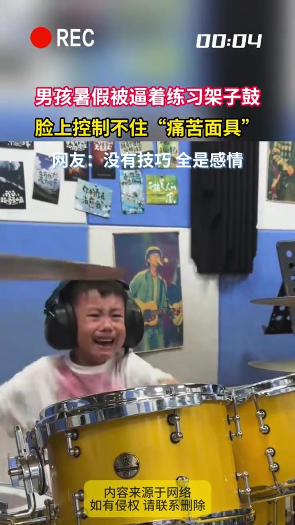 男孩暑假被逼着练习架子鼓,脸上控制不住痛苦面具!!
