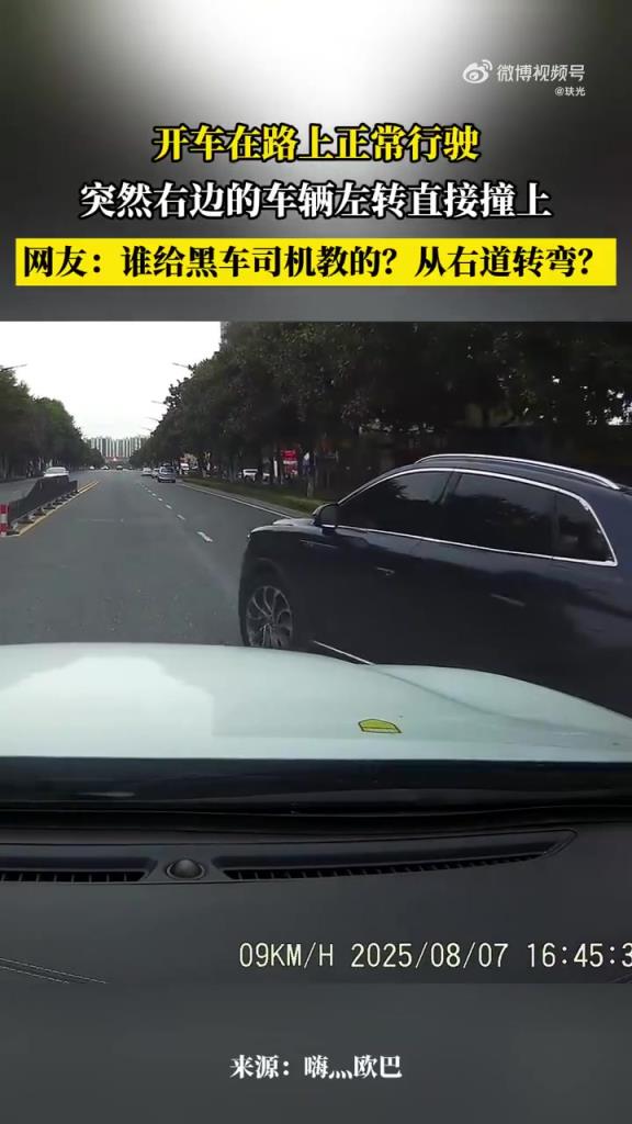 开车在路上正常行驶,突然右边的车辆左转直接撞上