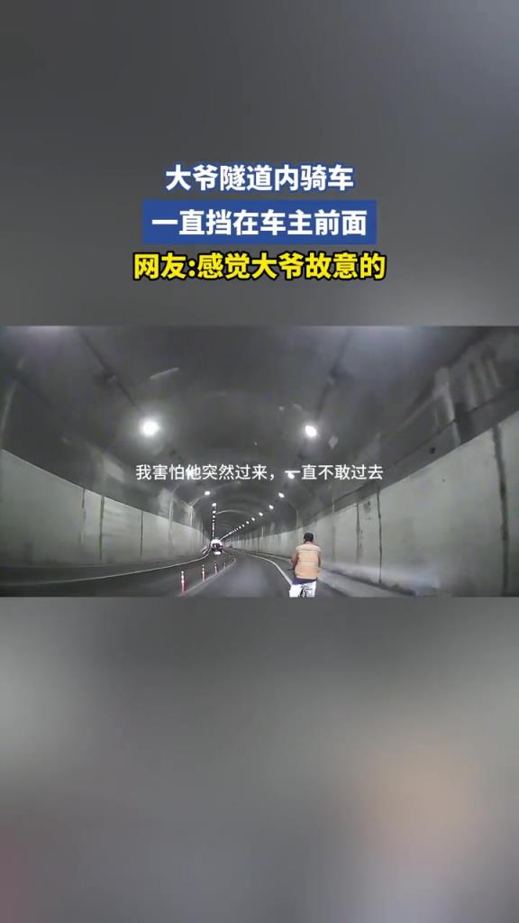 大爷隧道内骑车,一直挡在车主前面!网友:感觉大爷故意的!!