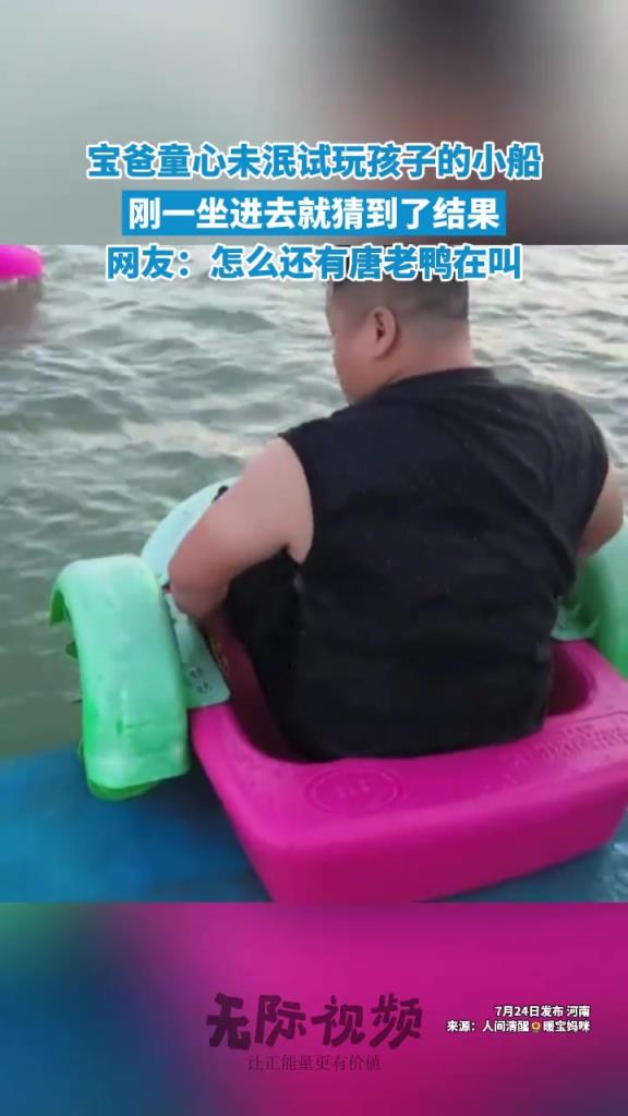 宝爸童心未泯试玩孩子的小船,刚一坐进去就猜到了结果