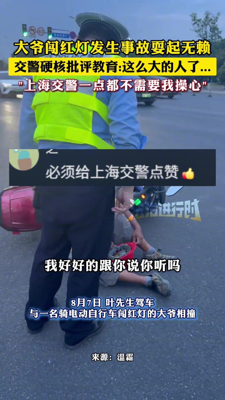 大爷闯红灯发生事故耍起无赖 交警硬核批评教育:这么大的人了
