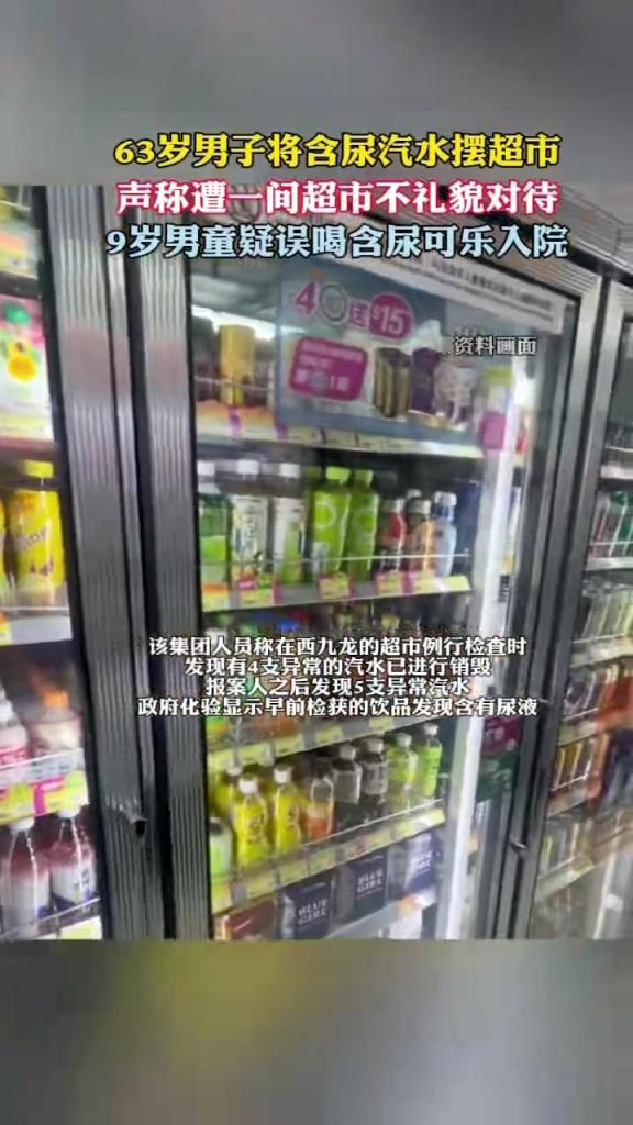 63岁男子将含尿汽水摆超市 9岁男童误喝入院