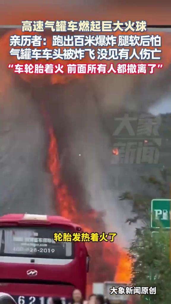 高速气罐车燃起巨大火球 ,亲历者:跑出百米爆炸,腿软后怕