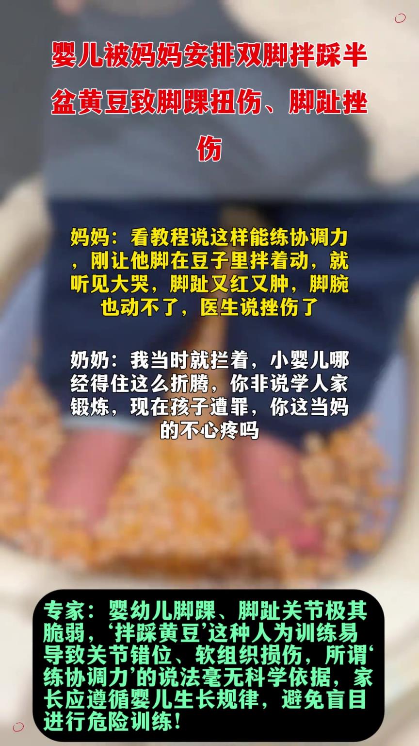 婴儿被妈妈安排双脚拌踩半盆黄豆致脚踝扭伤、脚趾挫伤
