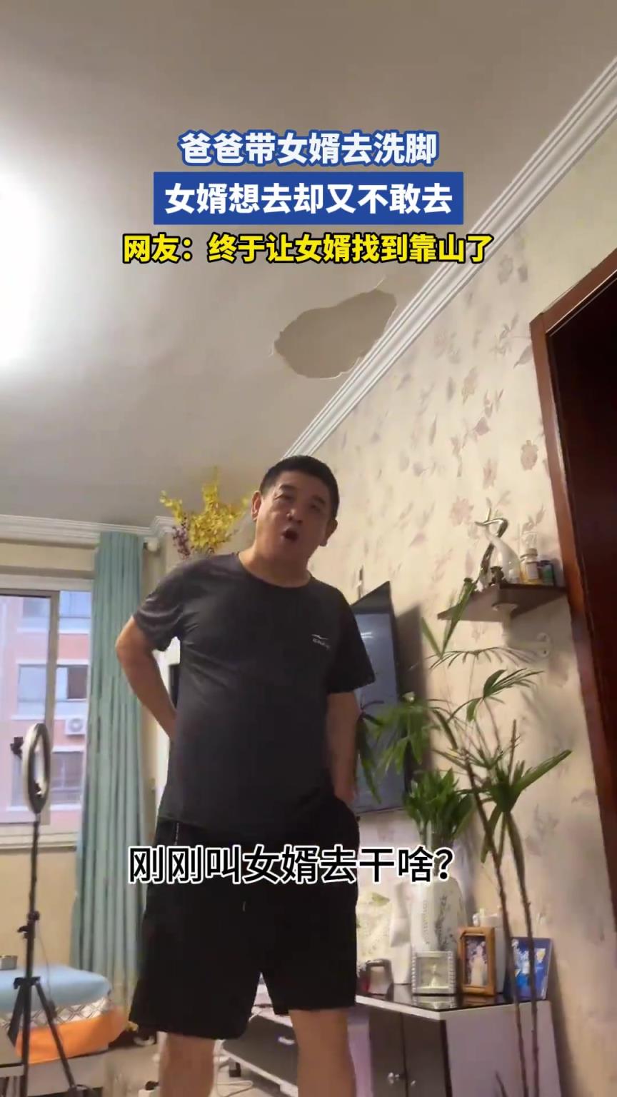 爸爸带女婿去洗脚,女婿想去却又不敢去