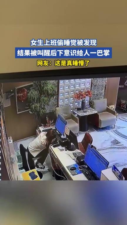 女生上班偷睡觉被发现,结果被叫醒后下意识给人一巴掌