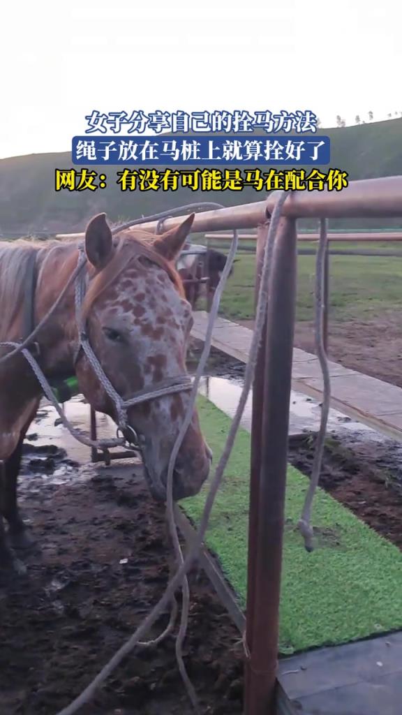 女子分享自己的拴马方法,绳子放在马桩上就算拴好了