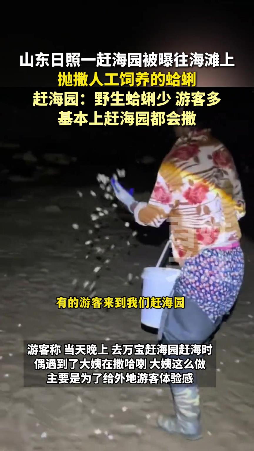 山东日照一赶海园被曝往海滩上抛撒人工饲养的蛤蜊