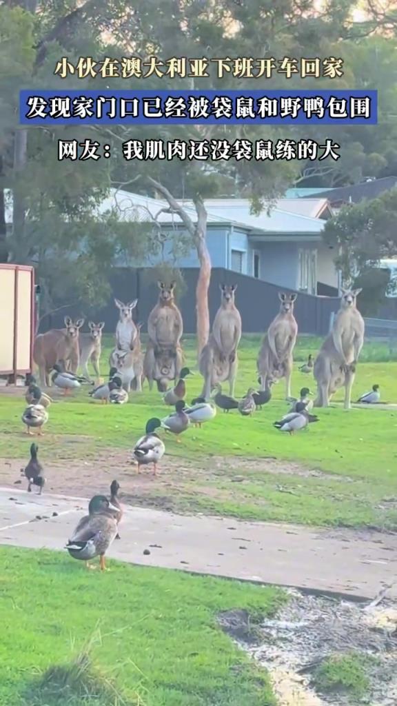 澳洲小伙下班回家,家门口被袋鼠野鸭包围
