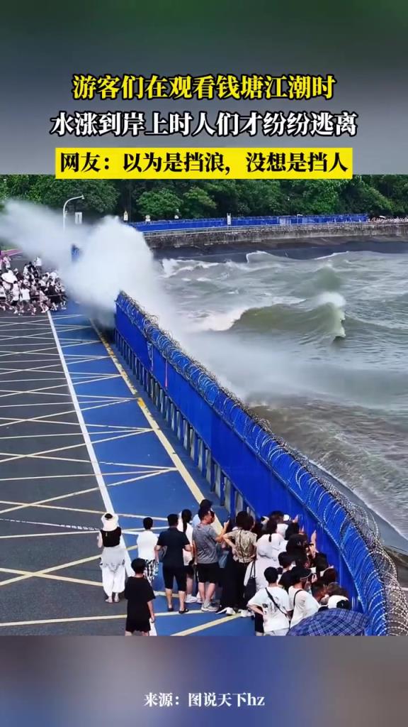 观钱塘江潮水上岸才逃离,网友:以为挡浪实际挡人!