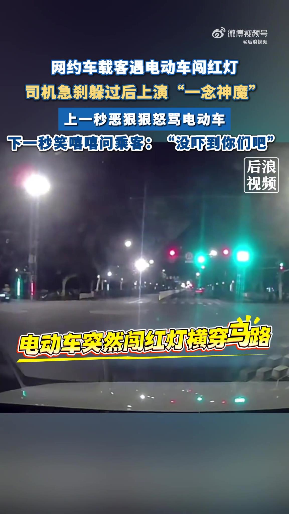 网约车载客经过路口时遇电动车闯红灯横穿马路