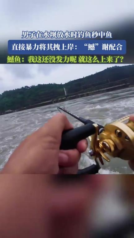 男子在水坝放水时钓鱼秒中鱼,鱼:我还没发力呢就这么上来了?