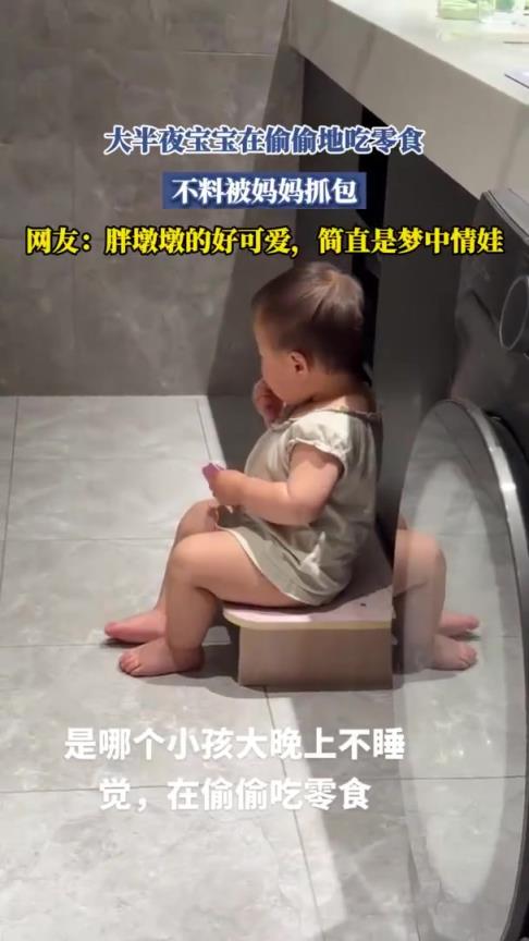 大半夜宝宝在偷偷吃零食,不料被妈妈抓包