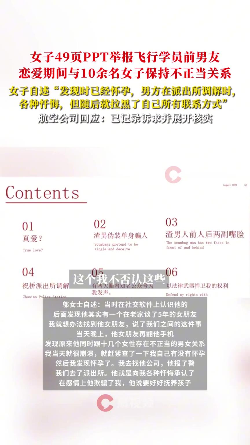 女子49页PPT举报飞行学员男友,与10余名女子有不正当关系
