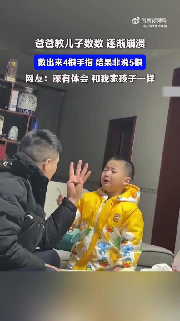 爸爸教儿子数数逐渐崩溃,崩溃的爸,尽力的娃,哈哈的妈
