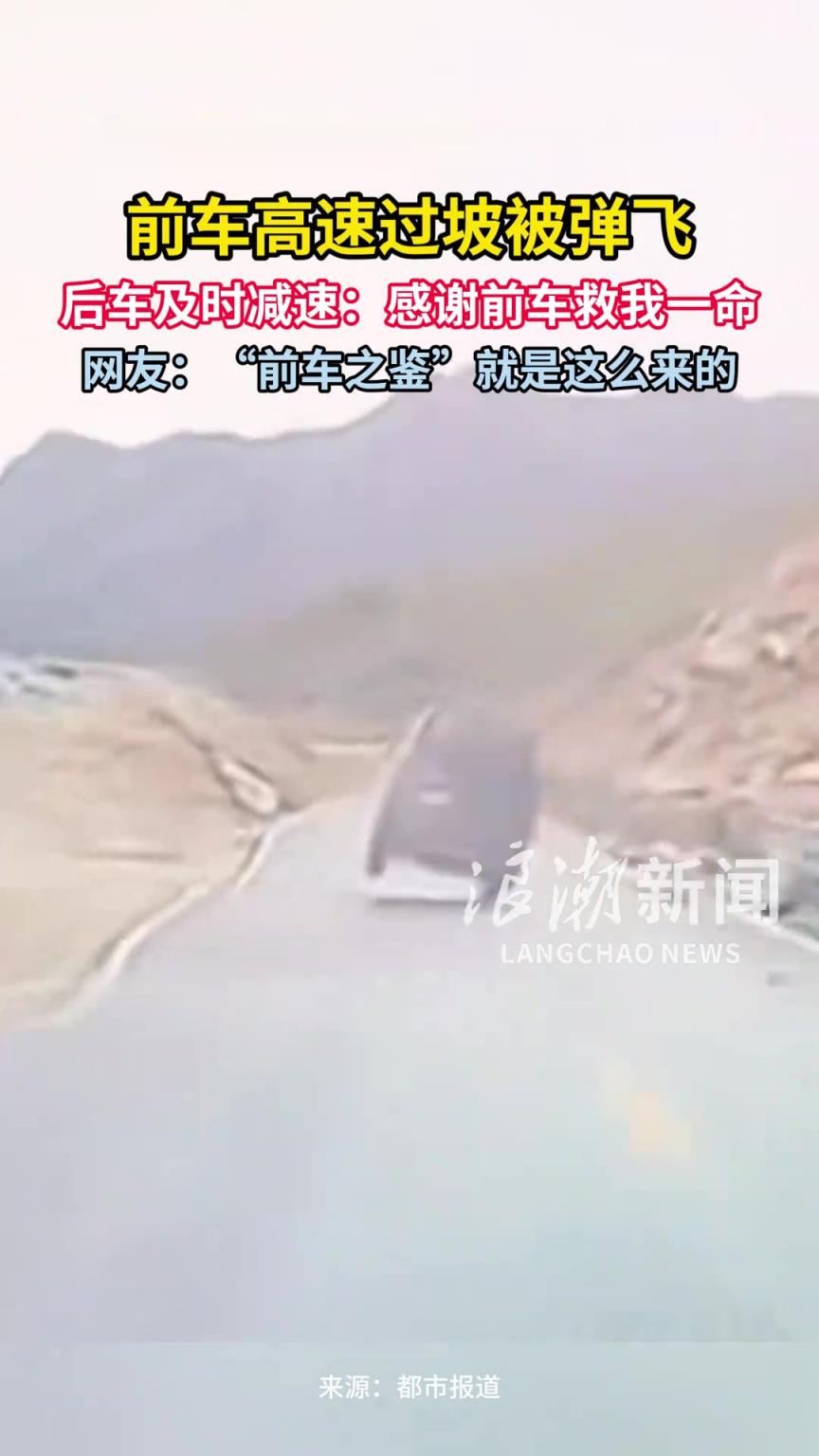 前车高速过坡被弹飞 后车及时减速:感谢前车救我一命!