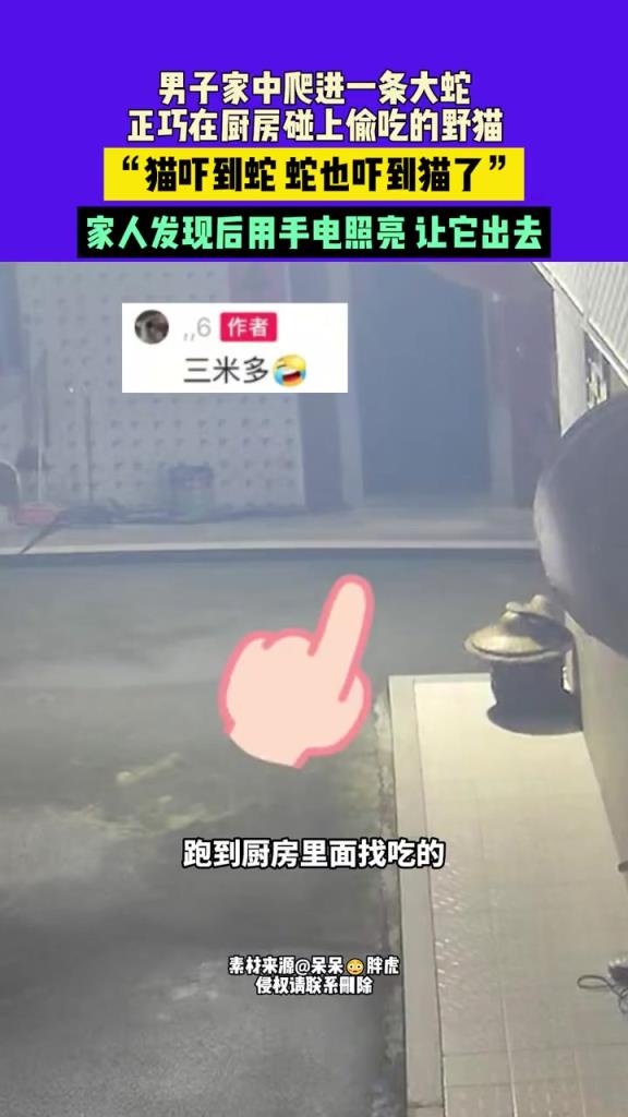 男子家中爬进一条大蛇,正巧在厨房碰上偷吃的野猫...
