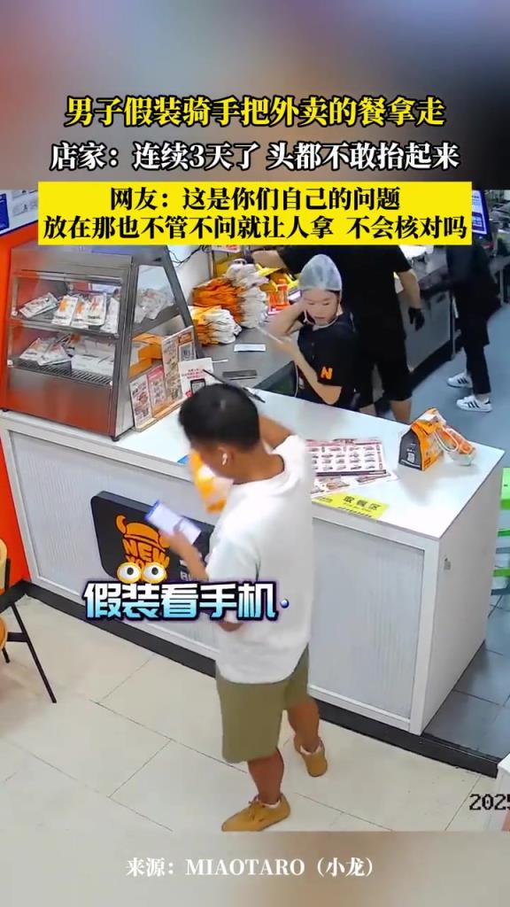 男子假装骑手把外卖的餐拿走,店家:连续3天了 !!