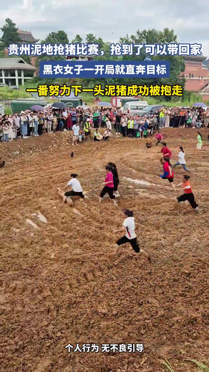 贵州泥地抢猪比赛,抢到了可以带回家