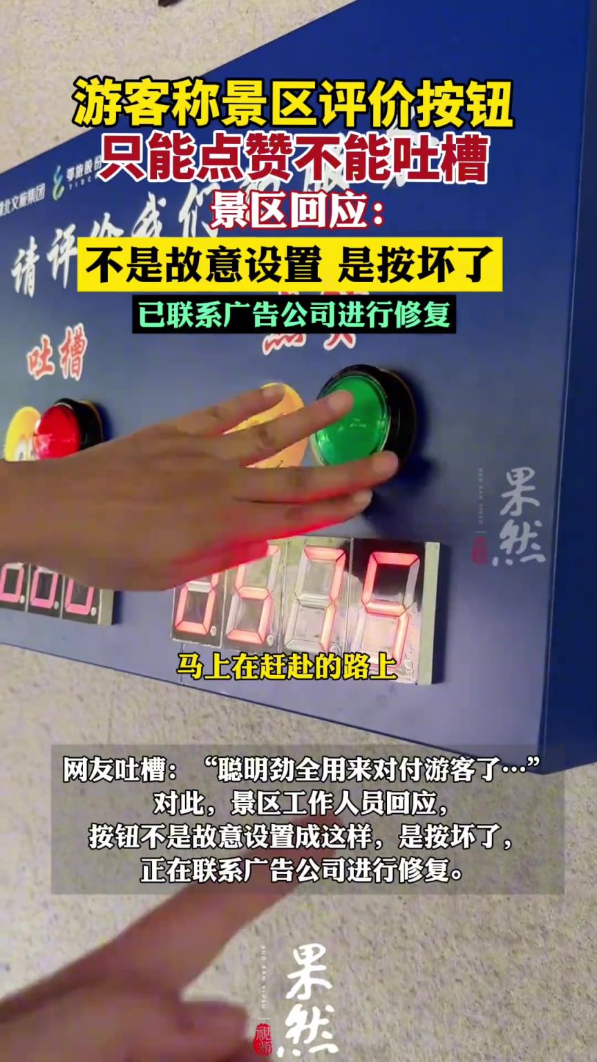 景区评价按键只能点赞不能吐槽 景区回应:按键坏了