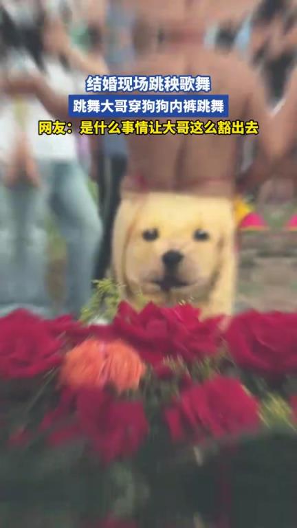结婚现场跳秧歌舞,跳舞大哥穿狗狗内裤跳舞