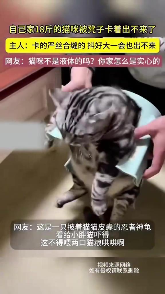 18斤胖猫被卡凳子惊魂瞬间!主人妙招解救!