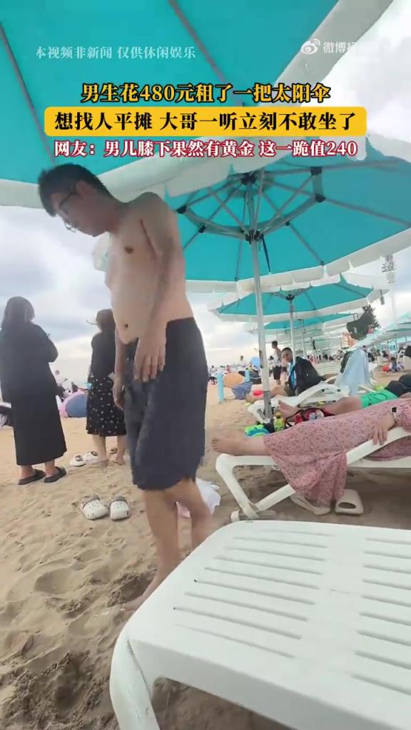男生花480元租太阳伞欲找人平摊,大哥听闻忙拒绝