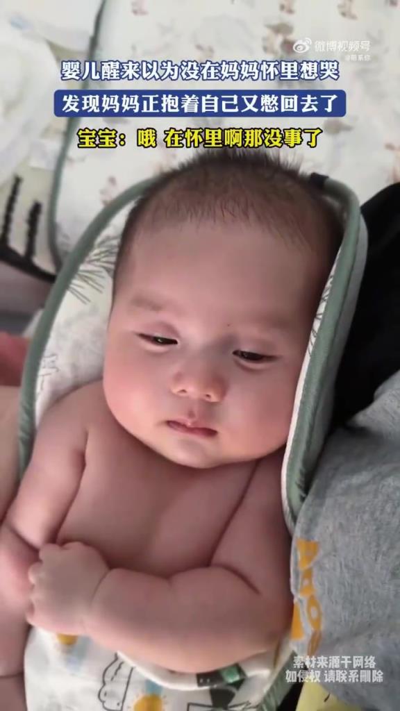 婴儿醒来以为没在妈妈怀里想哭,发现妈妈正抱着自己又憋回去了