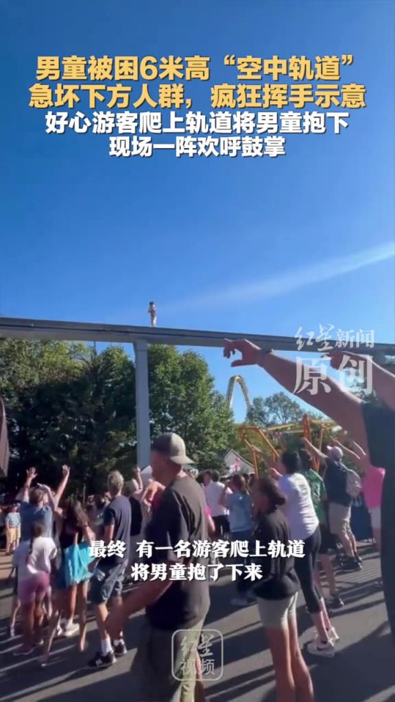 男童被困6米高“空中轨道” 急坏下方人群,疯狂挥手示意