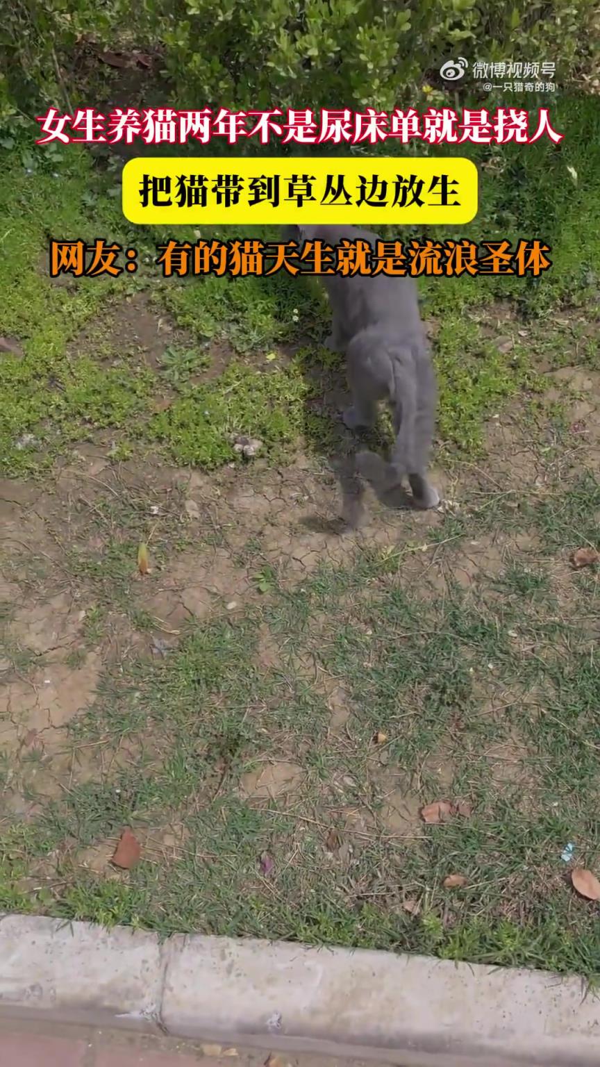 女生养猫两年不是尿床单就是挠人,把猫带到草丛边放生