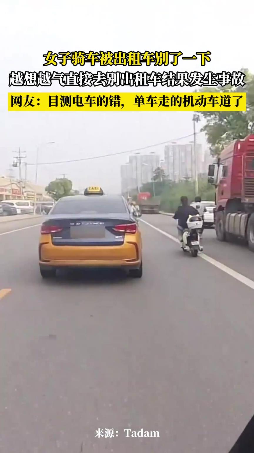 女子骑车被出租车别了一下,越想越气直接去别出租车结果发生事故
