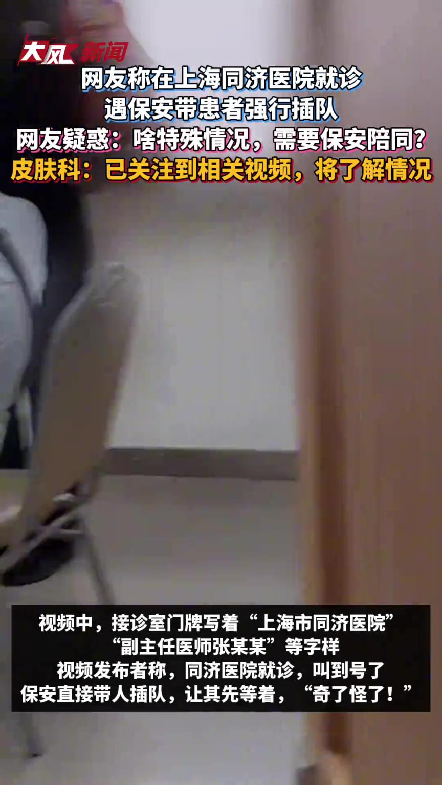网友称在上海同济医院就诊,遇保安带患者强行插队!!