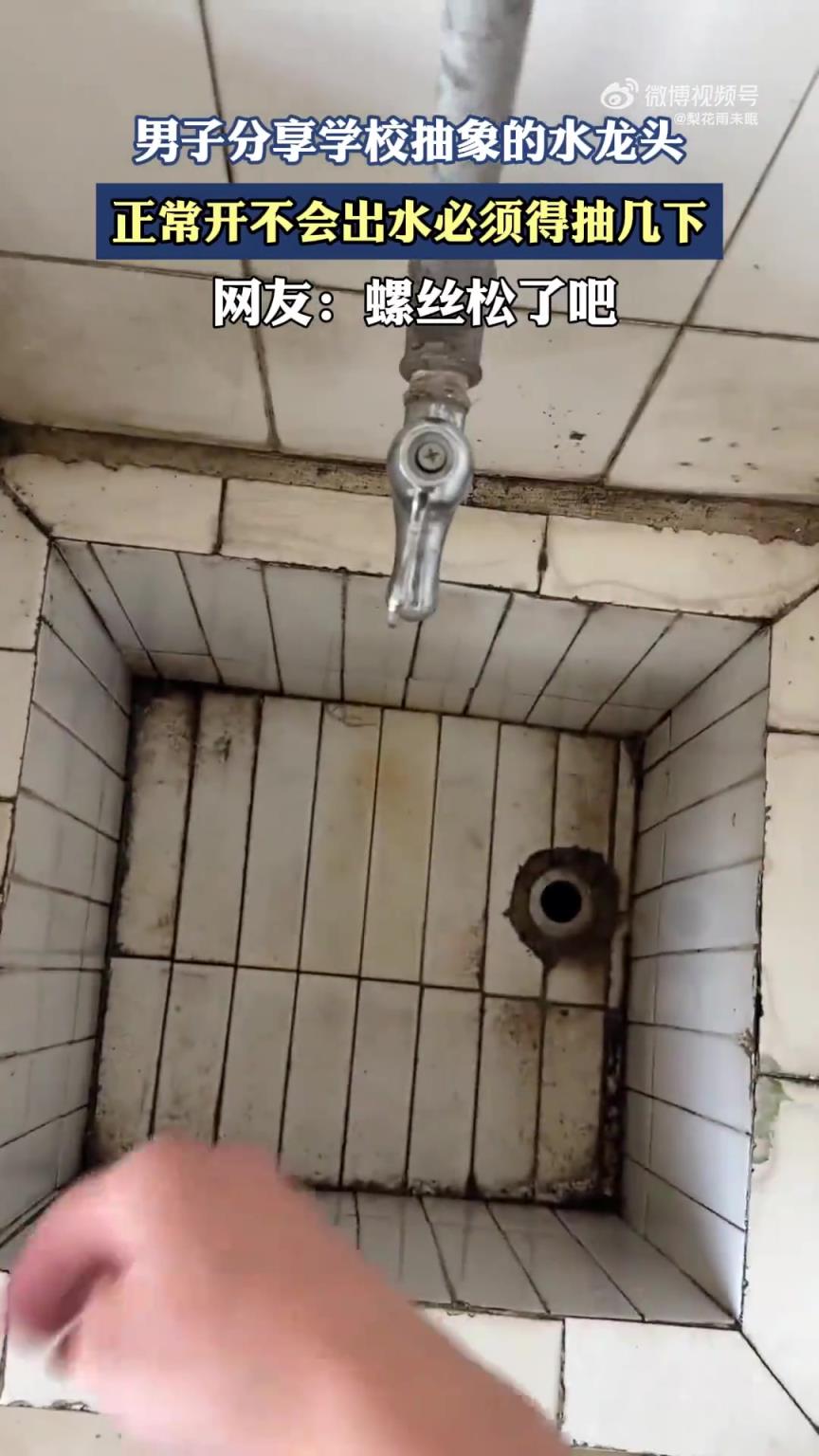 男子分享学校抽象的水龙头,正常开不会出水必须得抽几下