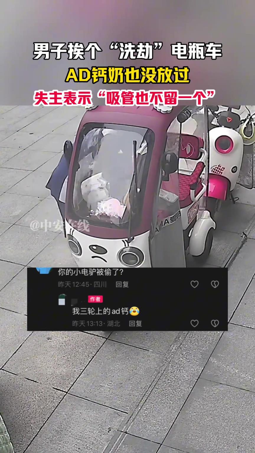男子挨个“洗劫”电瓶车,连三轮车上的AD钙奶也没放过