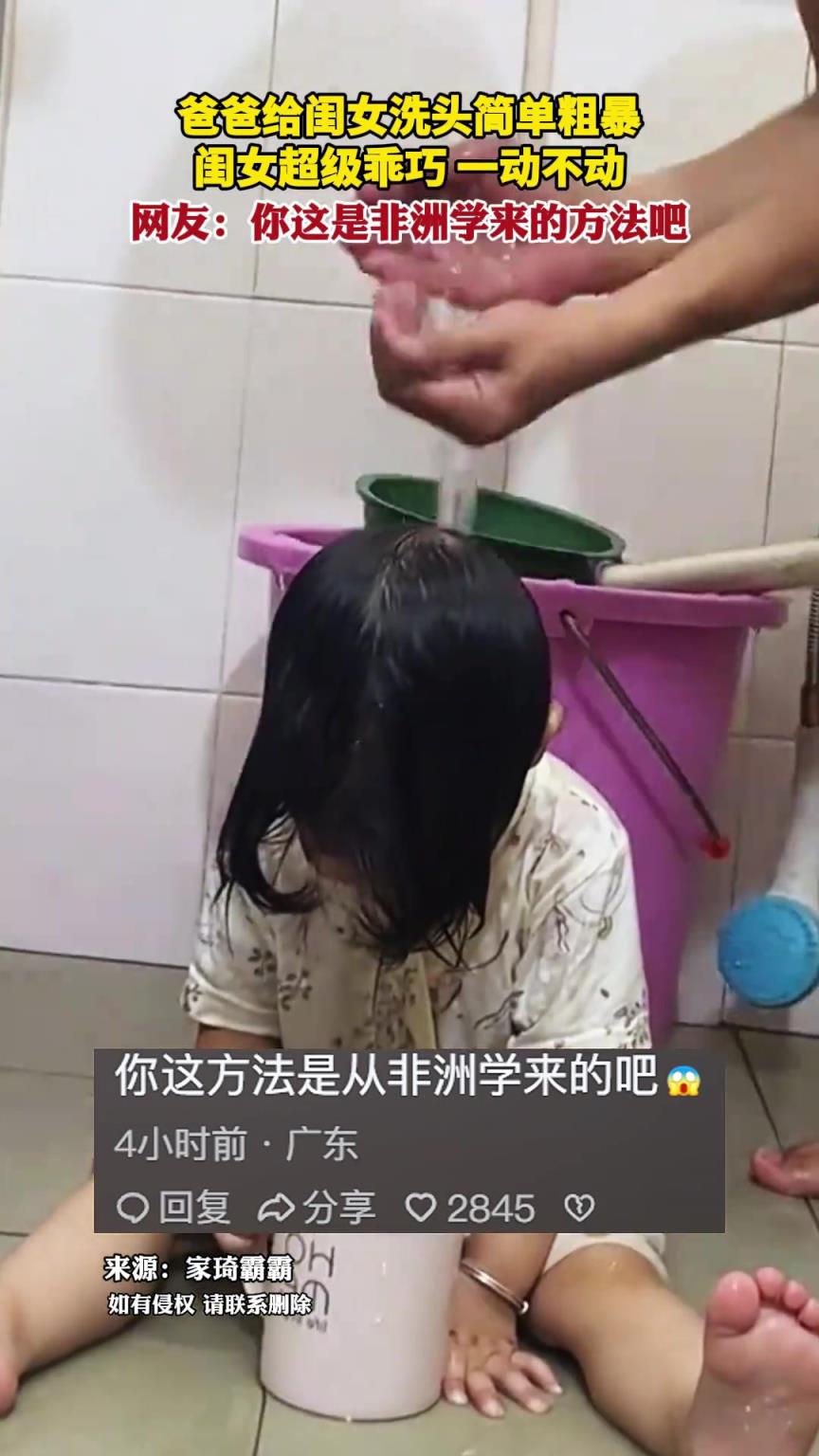 爸爸给闺女洗头简单粗暴,闺女真的好乖啊