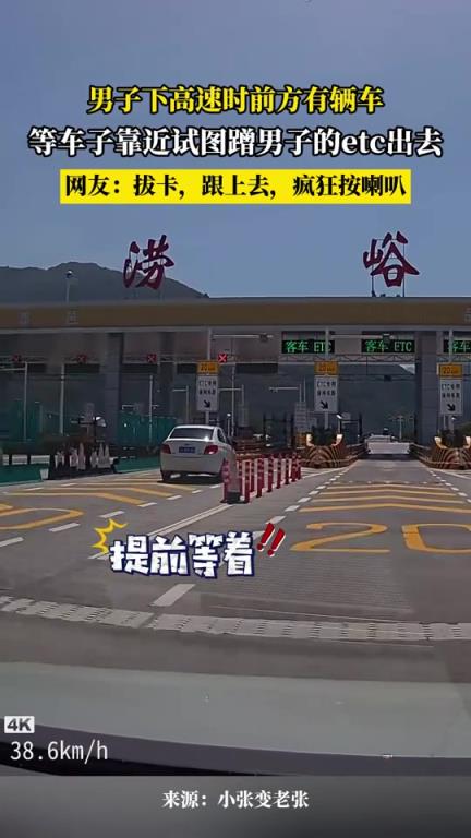 男子下高速时前方有辆车,试图蹭男子的etc出去