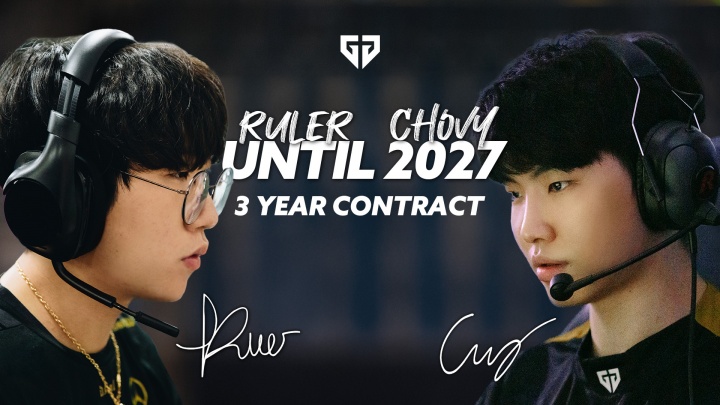 上单Kiin(2026年底到期),打野Canyon(今年年底到期),中单Chovy+下路Ruler(2024宣布续约三年,合同2027年底到期),辅助Duro(刚刚官宣续约)。