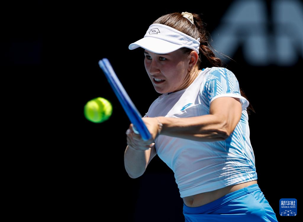 1月19日,俄罗斯选手拉希莫娃在比赛中回球。