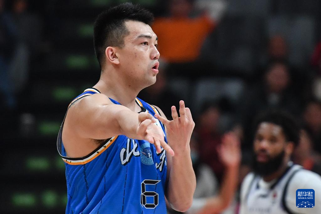 12月7日,北京北汽队球员张才仁在得分后庆祝。