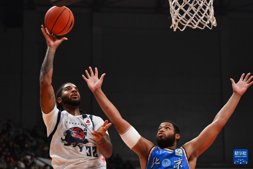 12月7日,山东高速队球员克里斯(右一)在比赛中投篮。