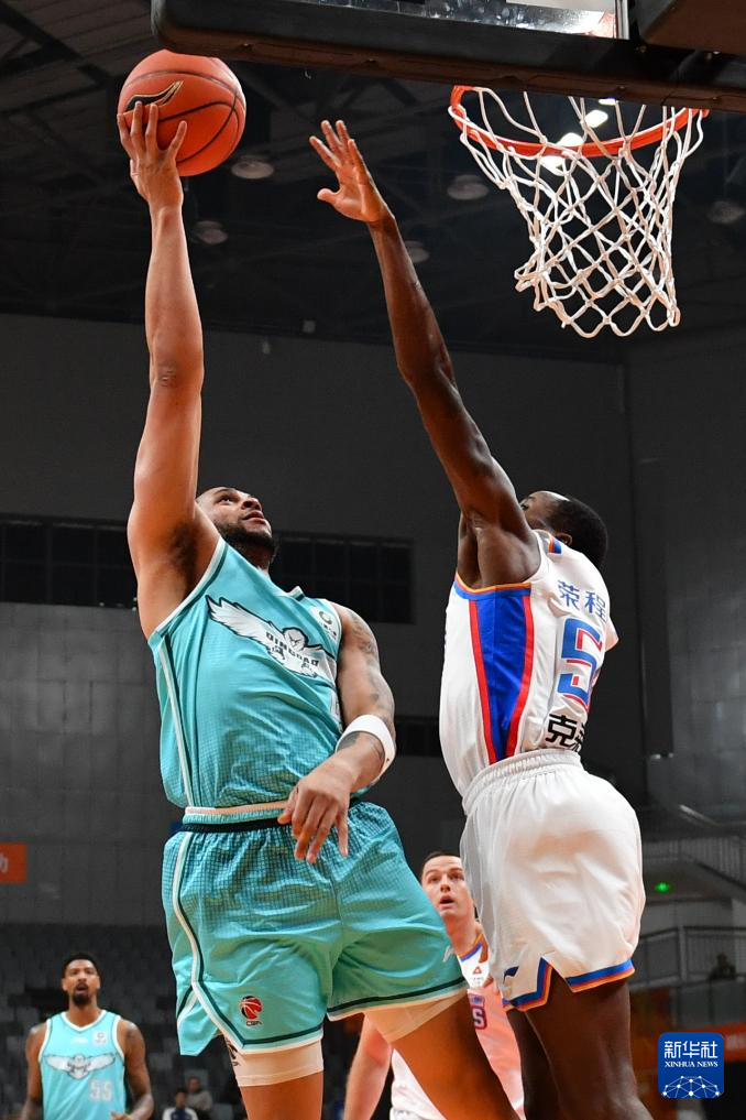 12月7日,青岛崂山啤酒队球员韦瑟斯庞(左)在比赛中进攻。