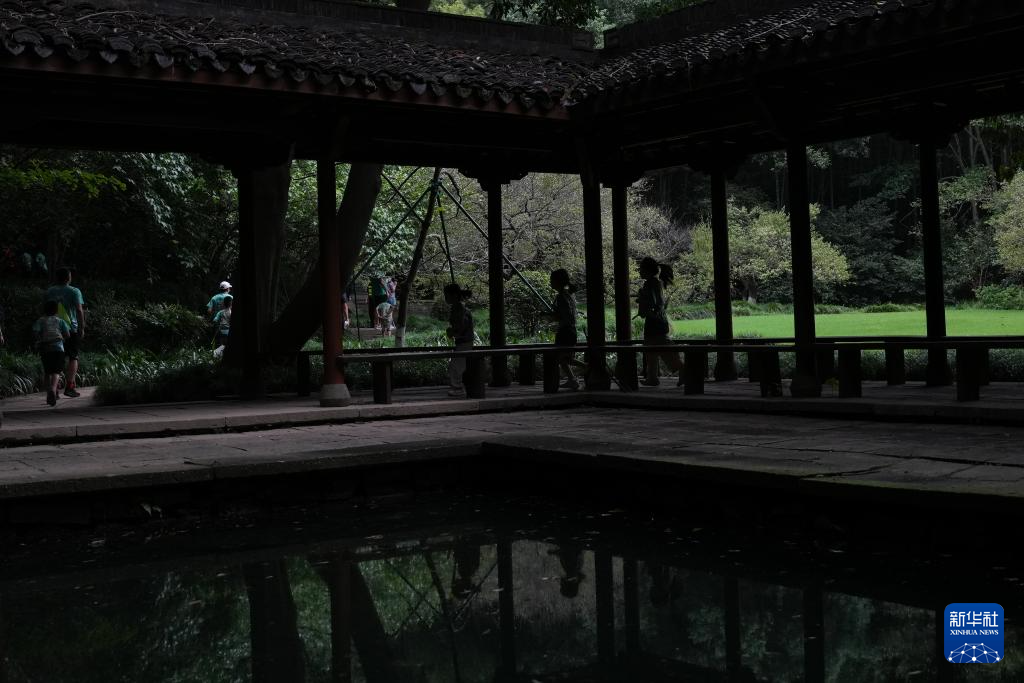 9月20日,参加少年越野赛的选手在比赛中穿过杭州植物园的一处长廊。