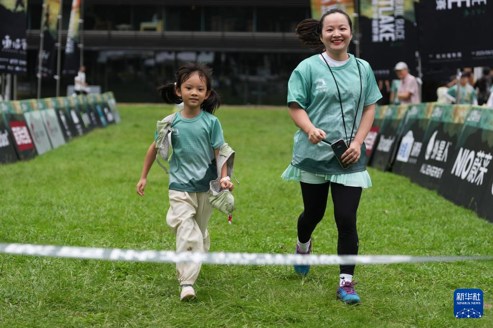 9月20日,参加少年越野赛的选手与陪跑家长在比赛中抵达终点线。